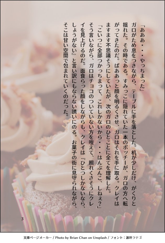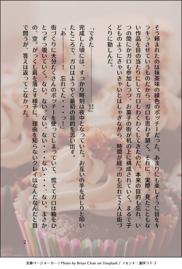 ◇z09:MATOI=keshi〼2019年11月11日読了時間: 1分 登場するお菓子の街は翌日みんなでわいわい食べました。 もちごめ様https://twitter.com/OMOCHIKOMEcha